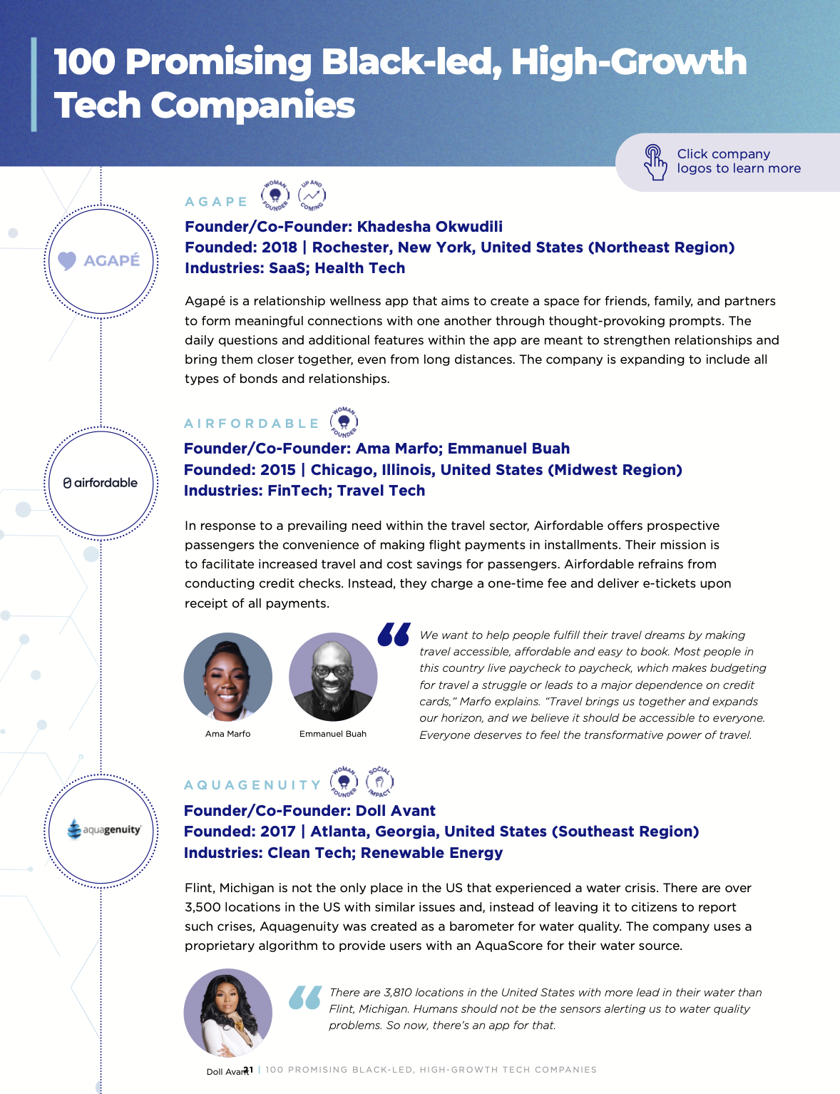 This report covered the recent progress, impact and effects of Black tech enterprise felt around the globe. We dug deep and surveyed 100+ companies breaking ground in the tech ecosystem.
